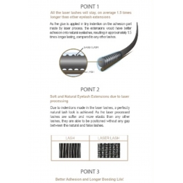 Laser Lash skropstas no BL Lashes. Ar reljefa saķeres daļu, kas nodrošina ilgāku skropstas savienojumu un nēsāšanas laiku. Šīs ir kvalitātes skropstas, tām piemīt dabīgs spīdums; skropstas ir piesātinātā melnā krāsā.